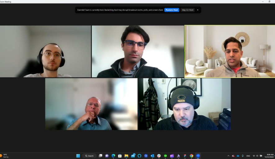 Two weekly Zoom meetings with the full team ensured alignment on product direction, design progress, and development priorities.