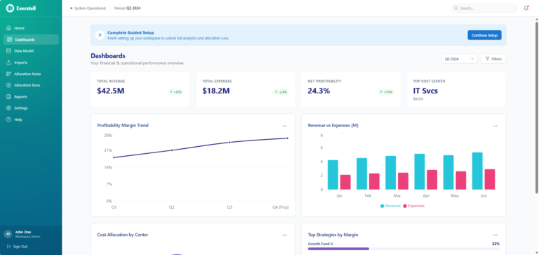 Everstell is a financial modeling platform used by enterprise finance teams to manage allocations across entities, cost centers, and funds. The platform supports organizations managing $100B+ in assets under management (AUM), where accuracy, reliability, and clarity are critical.